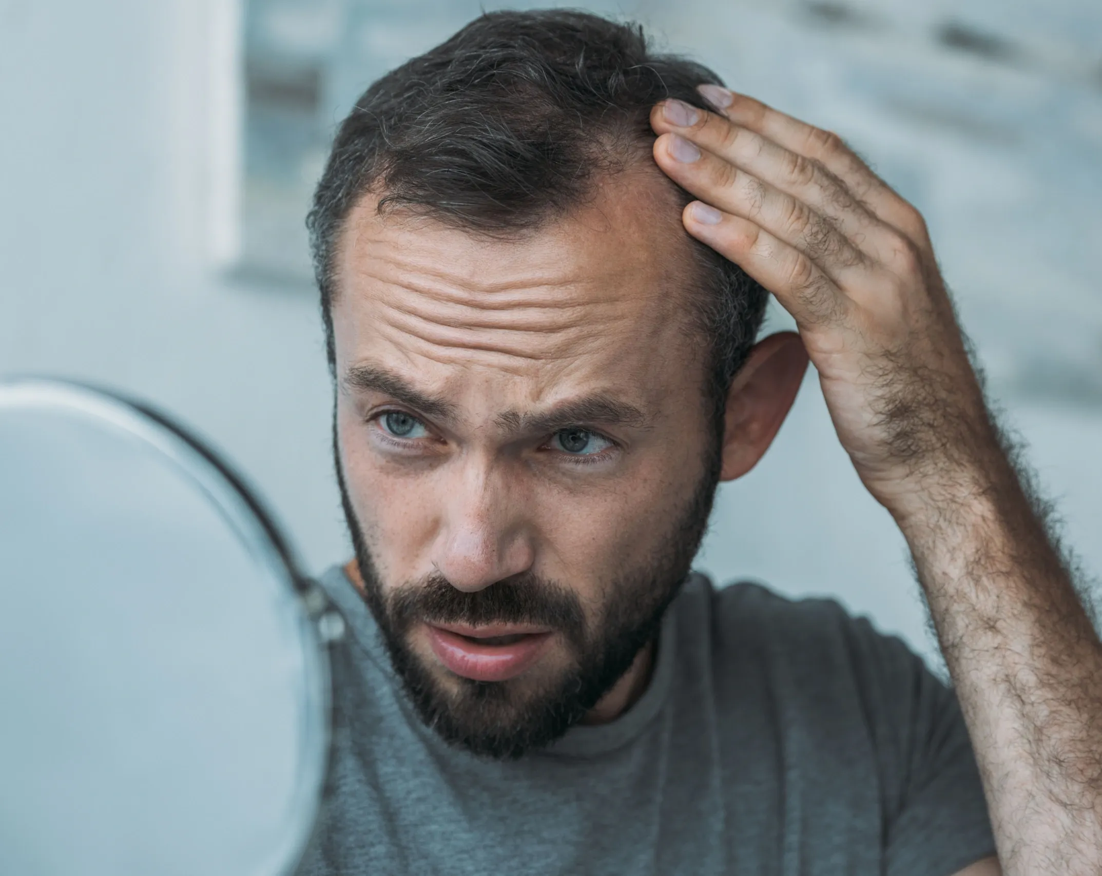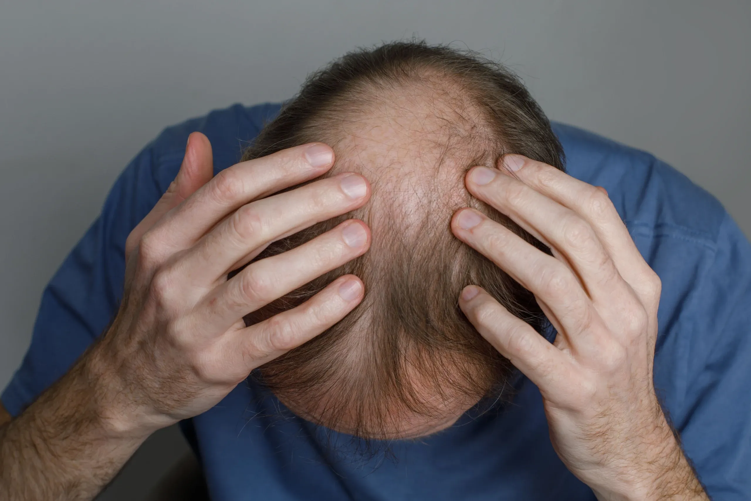 The primary driver of hair loss in men is androgenetic alopecia, a hereditary condition where hair follicles become increasingly sensitive to dihydrotestosterone (DHT). DHT is a byproduct of testosterone converted by the enzyme 5-alpha reductase. When DHT binds to androgen receptors in genetically susceptible follicles, it triggers a process called follicular miniaturization -- each growth cycle produces thinner, shorter, and less pigmented hairs until the follicle eventually stops producing visible hair altogether.