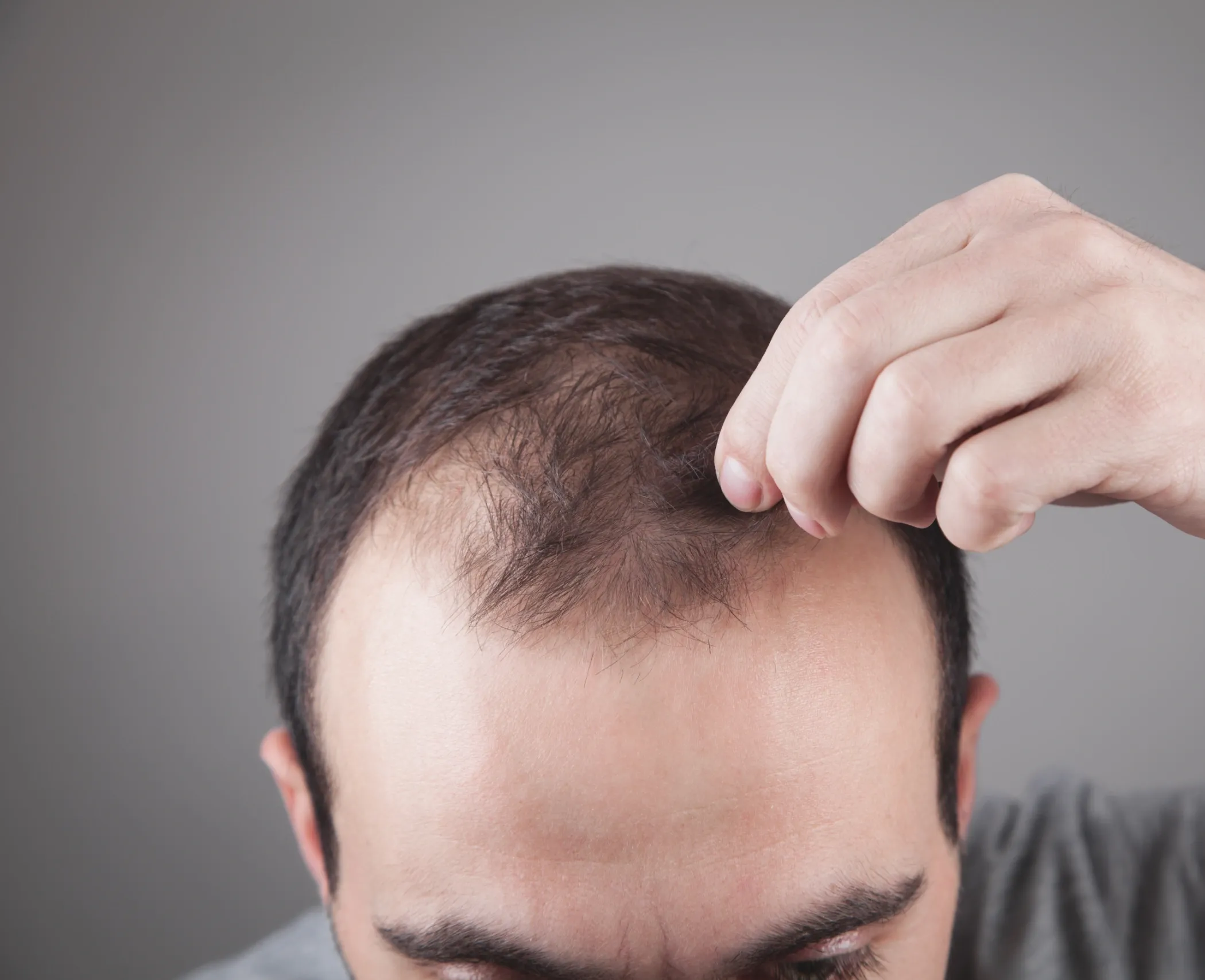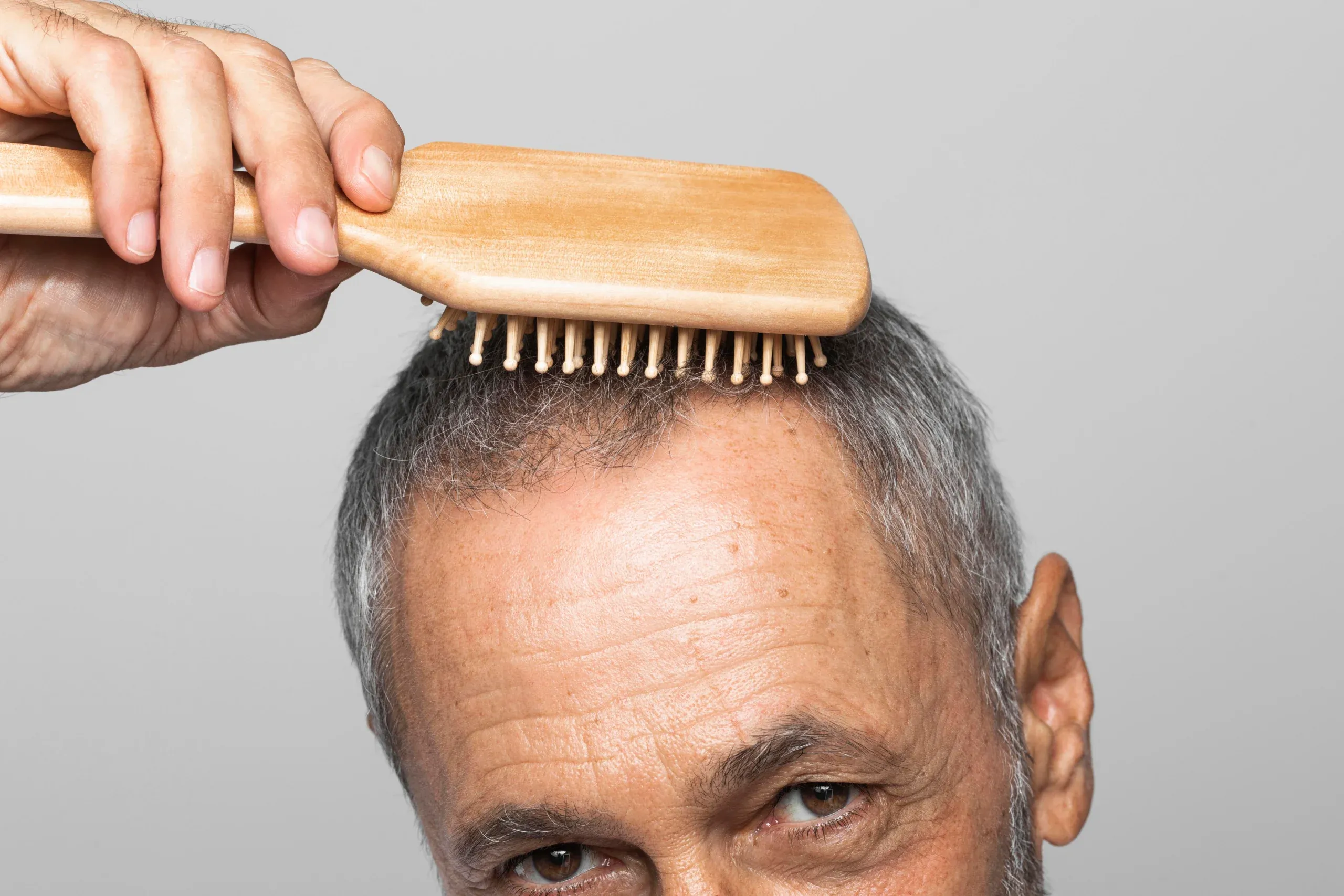 The hairline recedes before other areas because the hair follicles along the frontal and temporal scalp contain the highest concentration of androgen receptors. These receptors bind to dihydrotestosterone (DHT), a potent androgen converted from testosterone by the enzyme 5-alpha reductase. When DHT attaches to susceptible follicles, it triggers a process called follicular miniaturization — each successive growth cycle produces a thinner, shorter, less pigmented hair until the follicle eventually stops producing visible hair altogether.